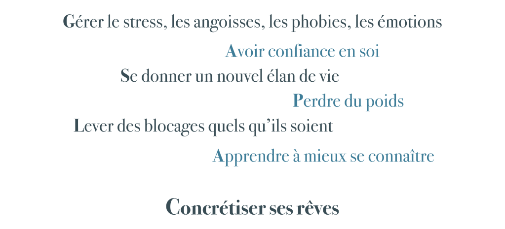 - La gestion du stress, des angoisses, des émotions, des phobies